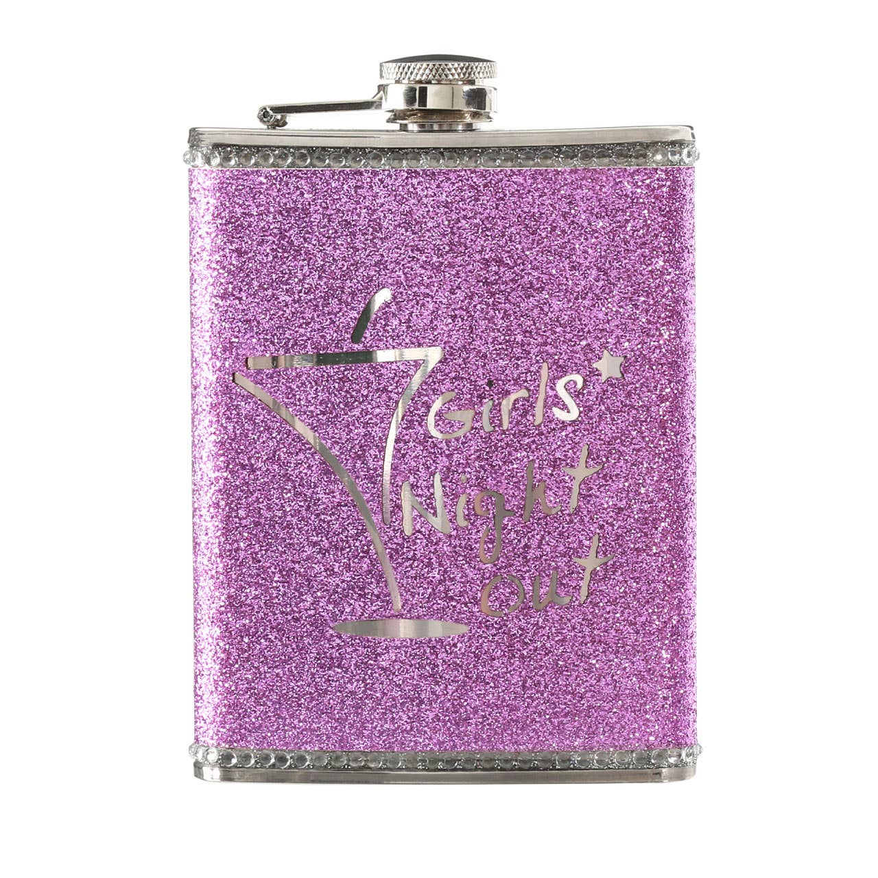 "Bring a touch of glamour to the party and I don't mean the sequence dress. The glitzy Girls Night Out 8oz hip flask would make a wonderful gift. Made using durable stainless steel, the flask is given a glittering hot pink finish."