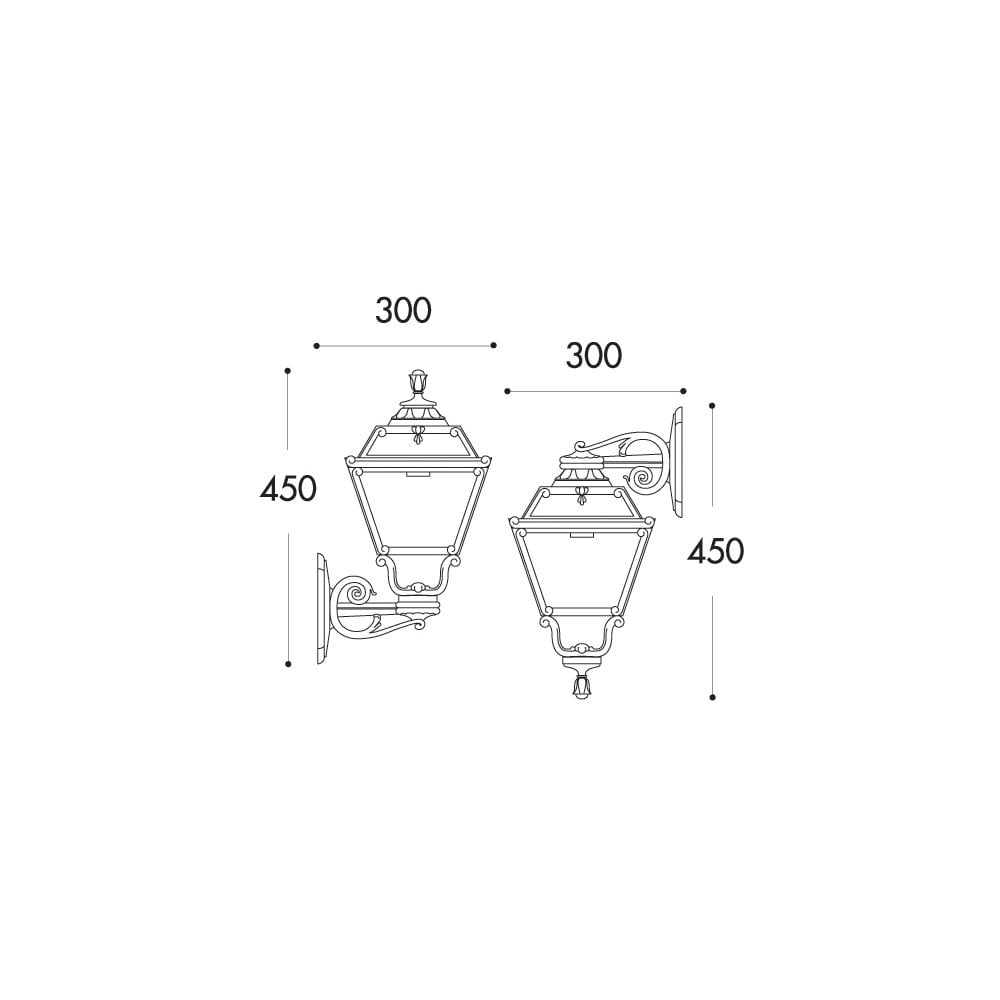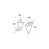 Square Lantern in Classic Style with Bisso Wall Bracket. Lantern And Wall Bracket Made From Shockproof Resin Material, Uv Rays Stabilized, Rust And Corrosion-Free. E27 Lampholder Provided. Insulation Class Ii, Protection Rating IP55.