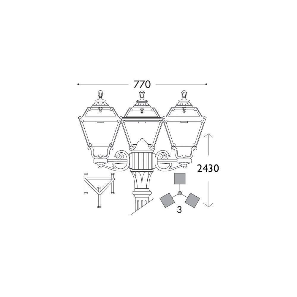 Golia Ricu-Bisso Black Triple Head Lantern with 3x6W LED Bulbs