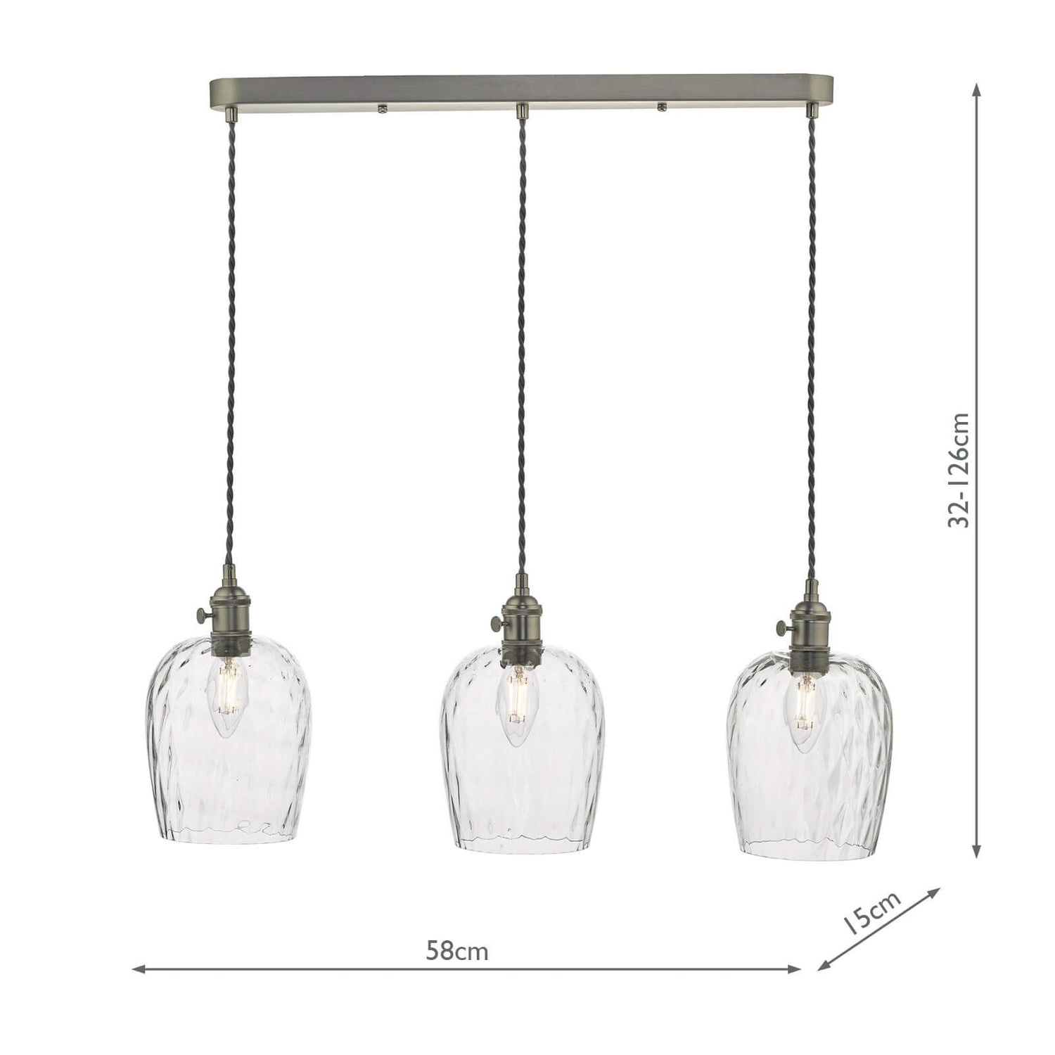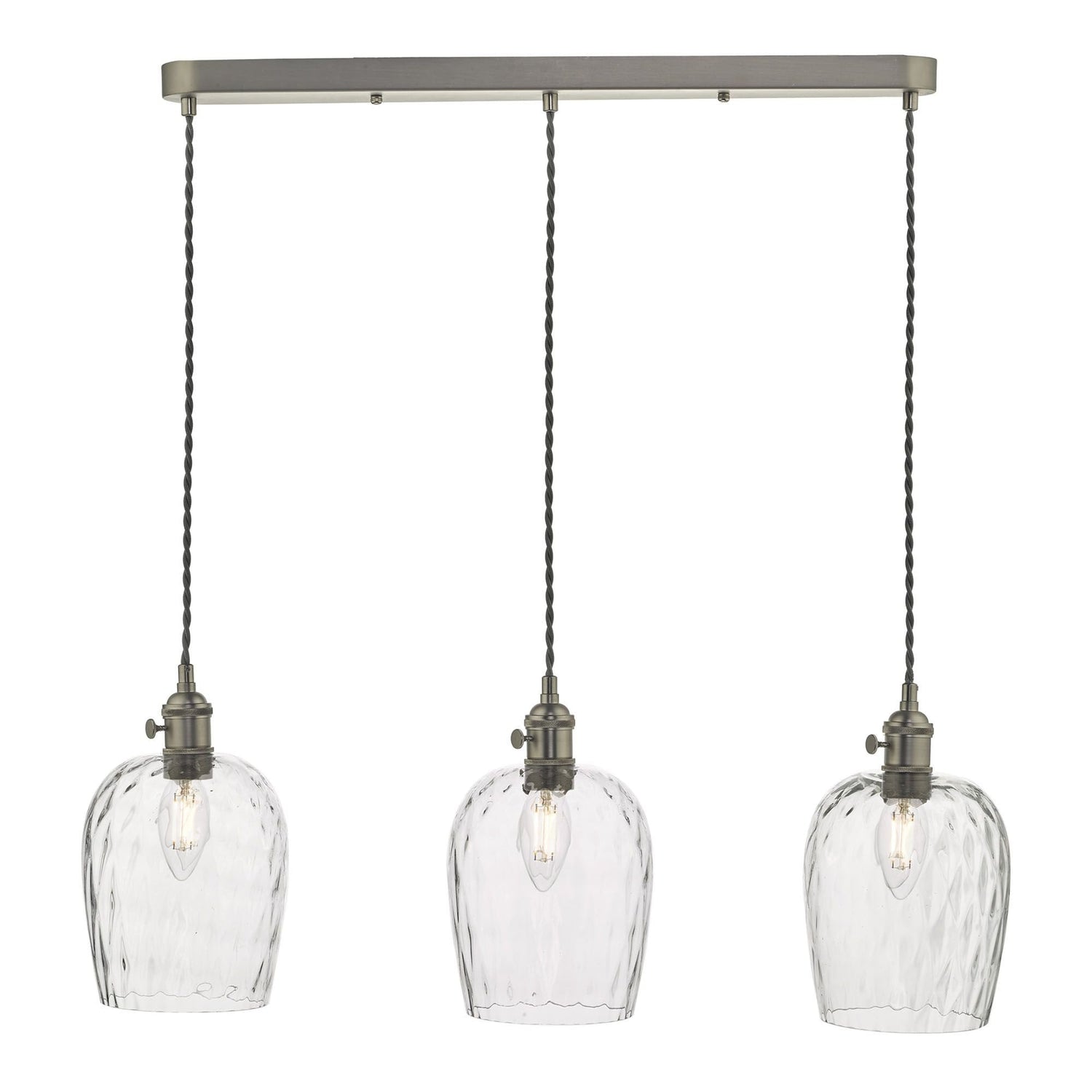 Hadano 3 Light Antique Chrome Suspension With Dimpled Glass Shades