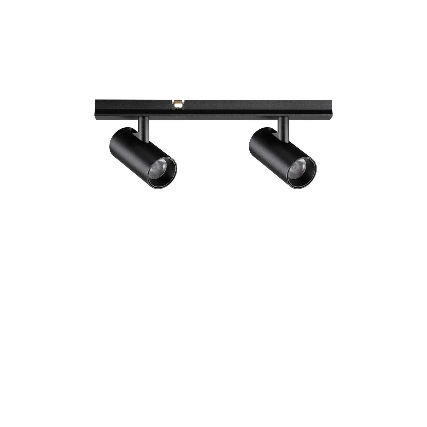 Linear system composed of extruded aluminum profile and lighting elements with magnetic fixing. The system is available in matt black for ceiling or recessed installation that disappears into the plasterboard.