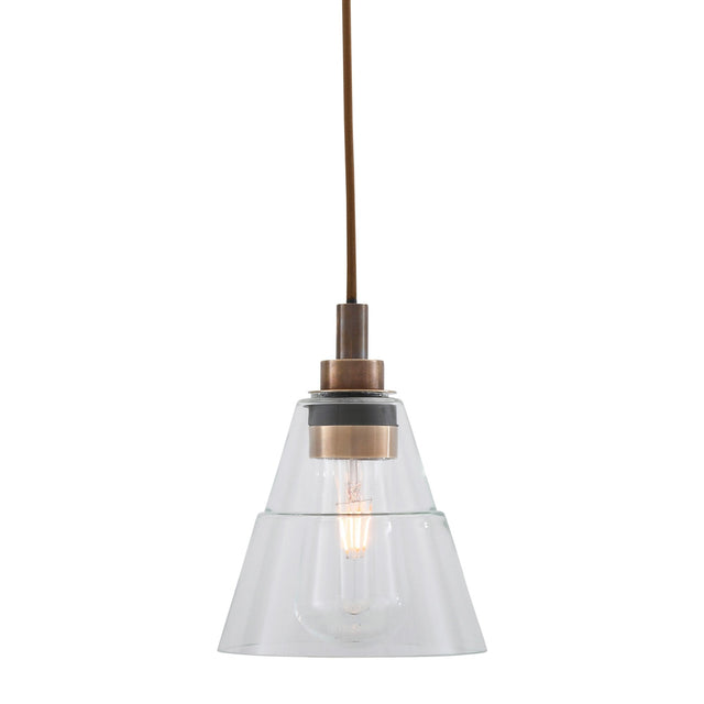 Elegant Clear Glass Cone Pendant Light with Antique Brass Finish