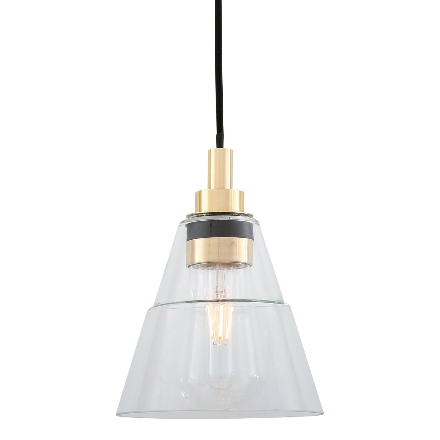 Elegant Clear Glass Cone Pendant Light with Antique Brass Finish - Antique Brass & Clear Glass is backordered and will ship as soon as it is back in stock.