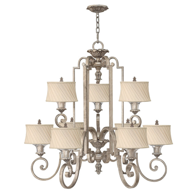 Elegant Silver Leaf Kingsley Chandelier with Ivory Shades