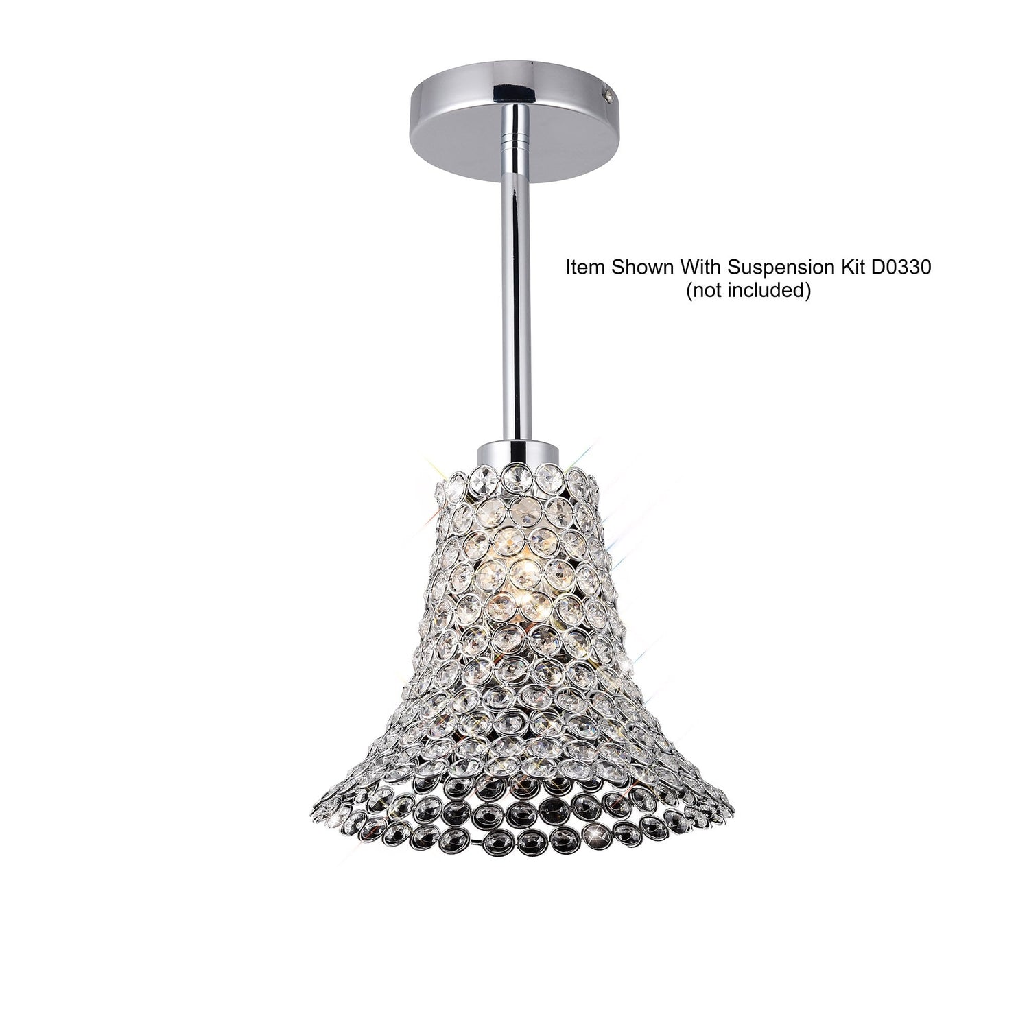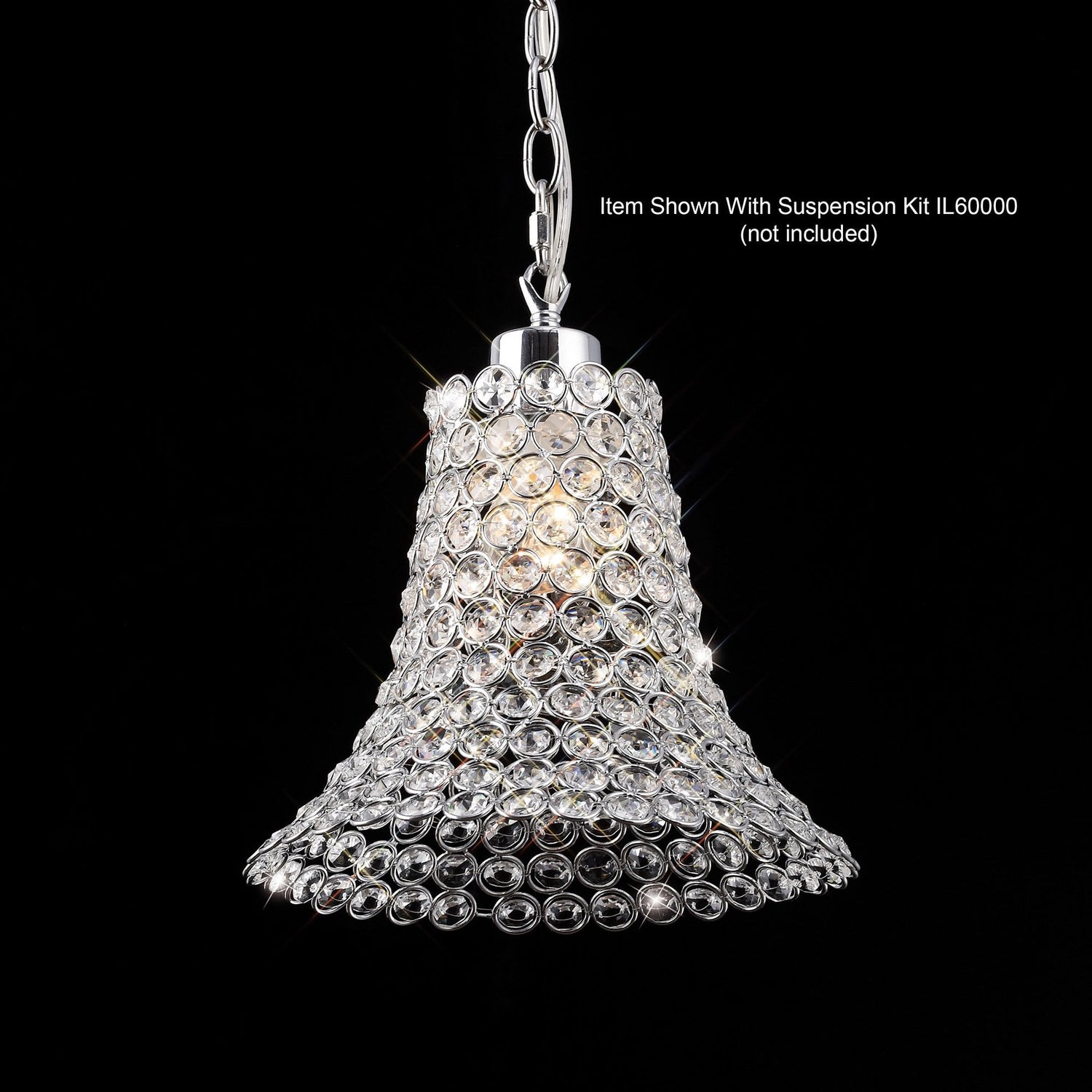 Elegant Kudo Crystal Cone Shade Non-Electric Light Fixture in Polished Chrome and Clear Crystal is backordered and will ship as soon as it is back in stock.
