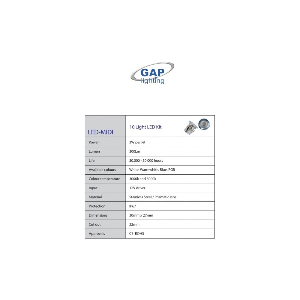- 0.3W Per Light (300Lm per 10 Lights)