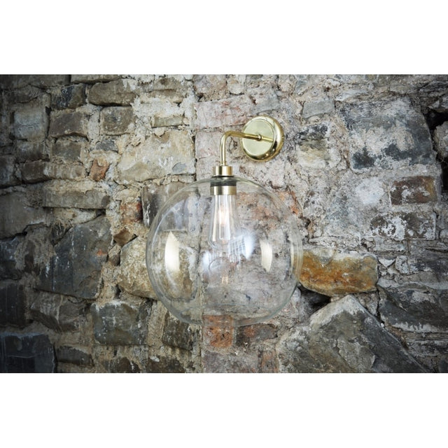 Leith Globe Shade Outdoor Wall Light in Brass and Glass