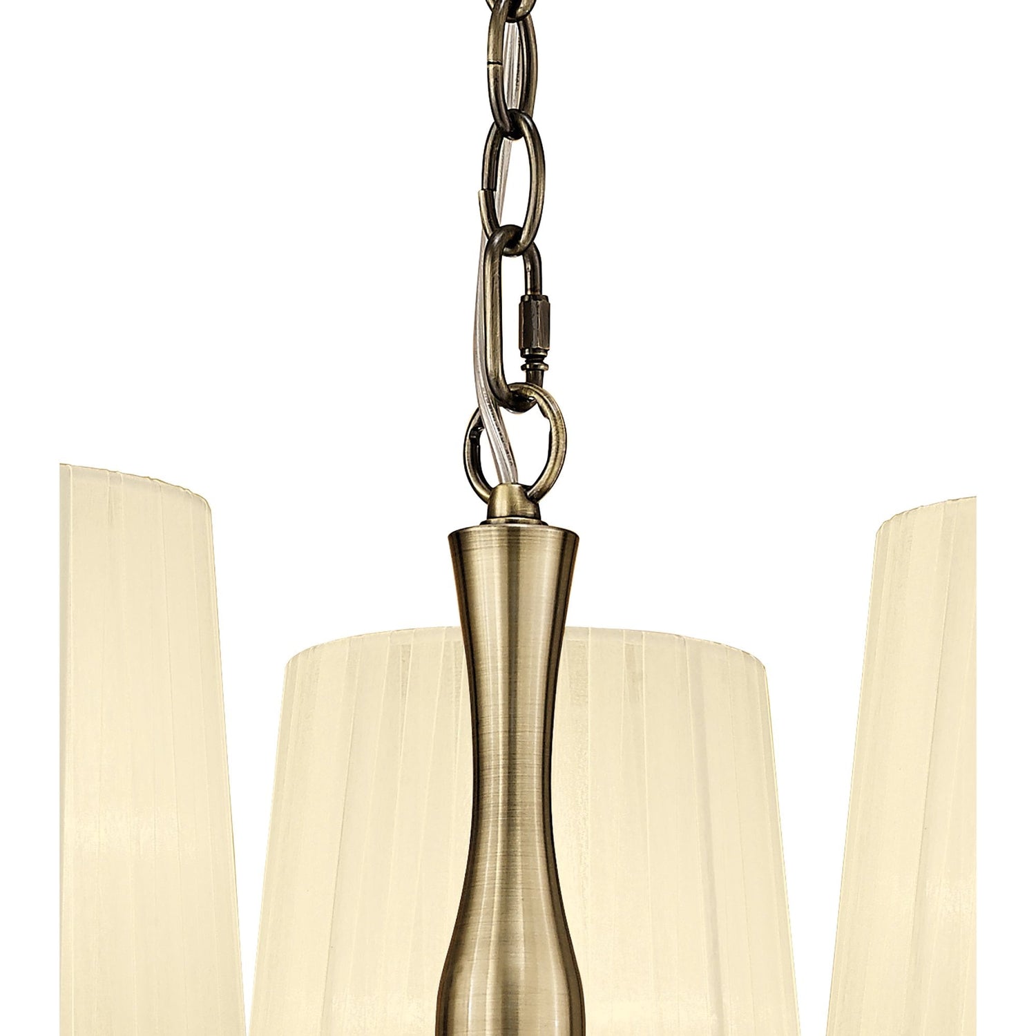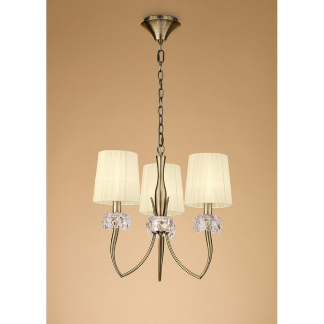 Loewe Antique Brass 3-Light Pendant with Cream Organza Shades