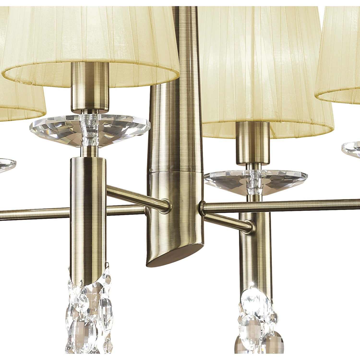 Elegant Tiffany 8-Light Pendant in Antique Brass with Cream Shades & Crystal Accents