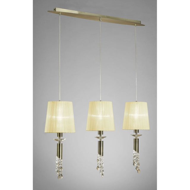 Elegant Antique Brass Cascade Pendant with Cream Shades & Clear Crystal Detailing