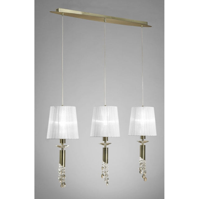 Tiffany Pendant Light: Antique Brass with White Shades and Clear Crystal Elegance