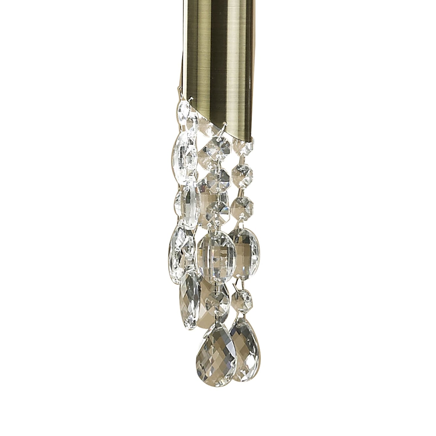 Tiffany Pendant Light: Antique Brass with White Shades and Clear Crystal Elegance is backordered and will ship as soon as it is back in stock.