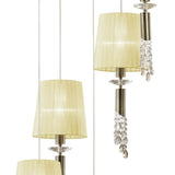 Elegant Spiral Tiffany Chandelier - Antique Brass with Cream Shades and Clear Crystal
