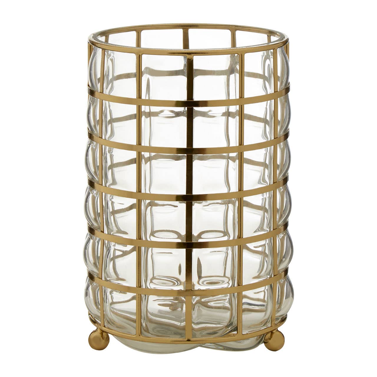 Martina Elegant Glass and Gold Hurricane Candle Holder
