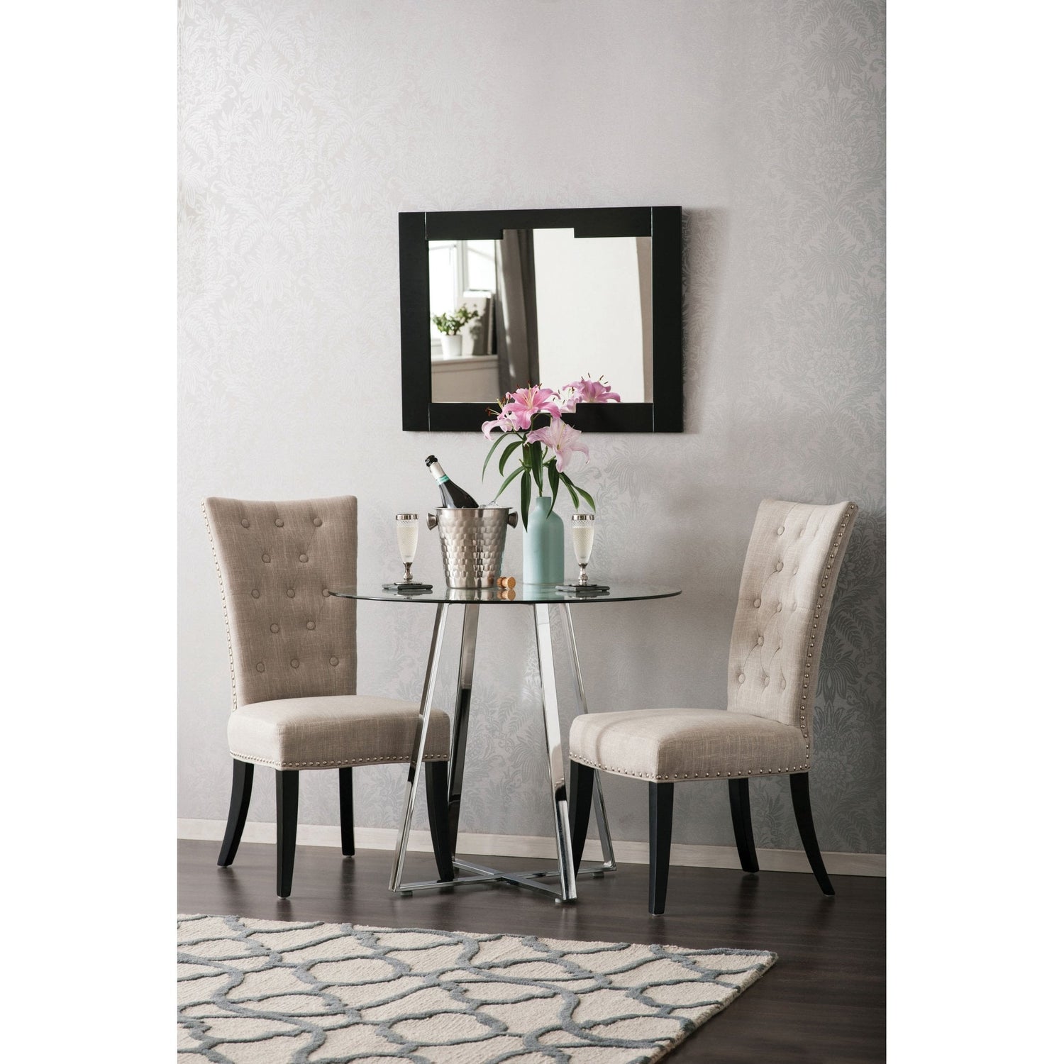 - Features: Premier Metropolitan glass dining table, The traditional round table is giving a contemporary twist with the chrome frame legs, Comfortably sits two, The durable and sturdy table can be used everyday, Suitable for a contemporary living area.