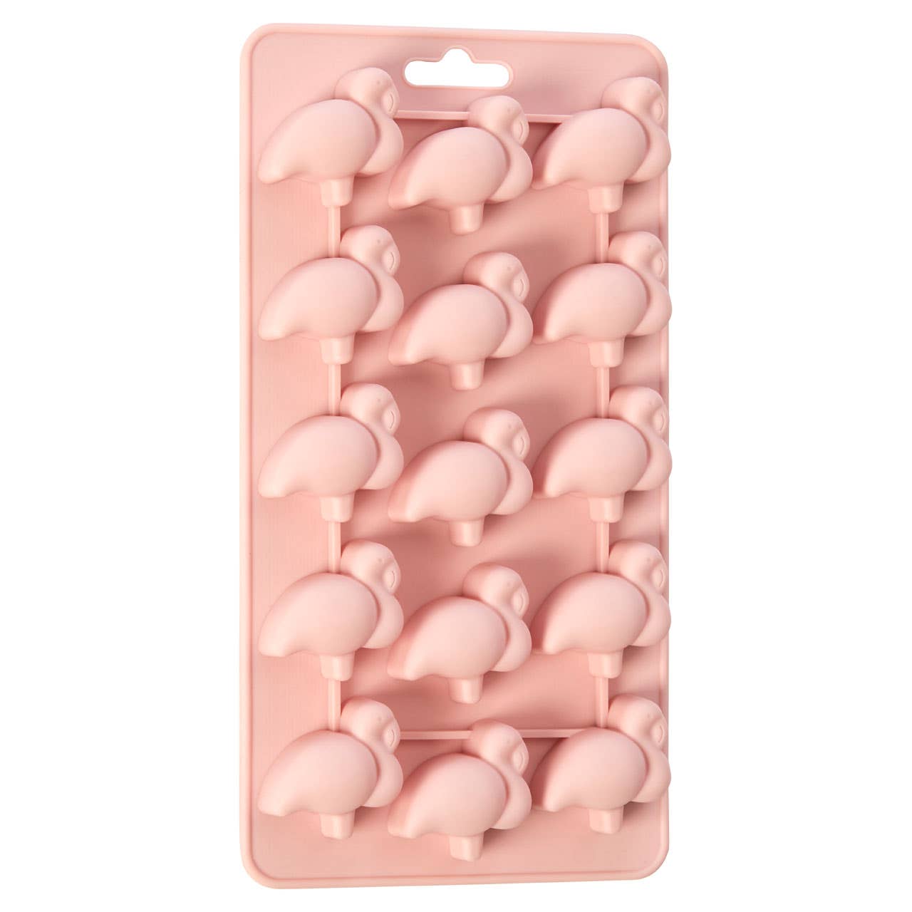 This pastel pink ice cube tray boasts fifteen flamingo shaped compartments, a quirky addition for cool drinks. A round hole is integrated into the top section allowing it to be used with hanging storage.
