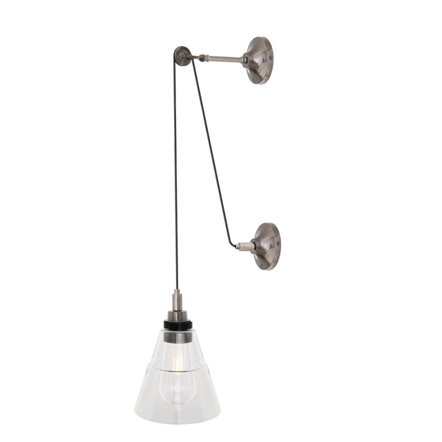 Monroe Vintage Pulley Wall Light in Antique Brass with Clear Glass Shade
