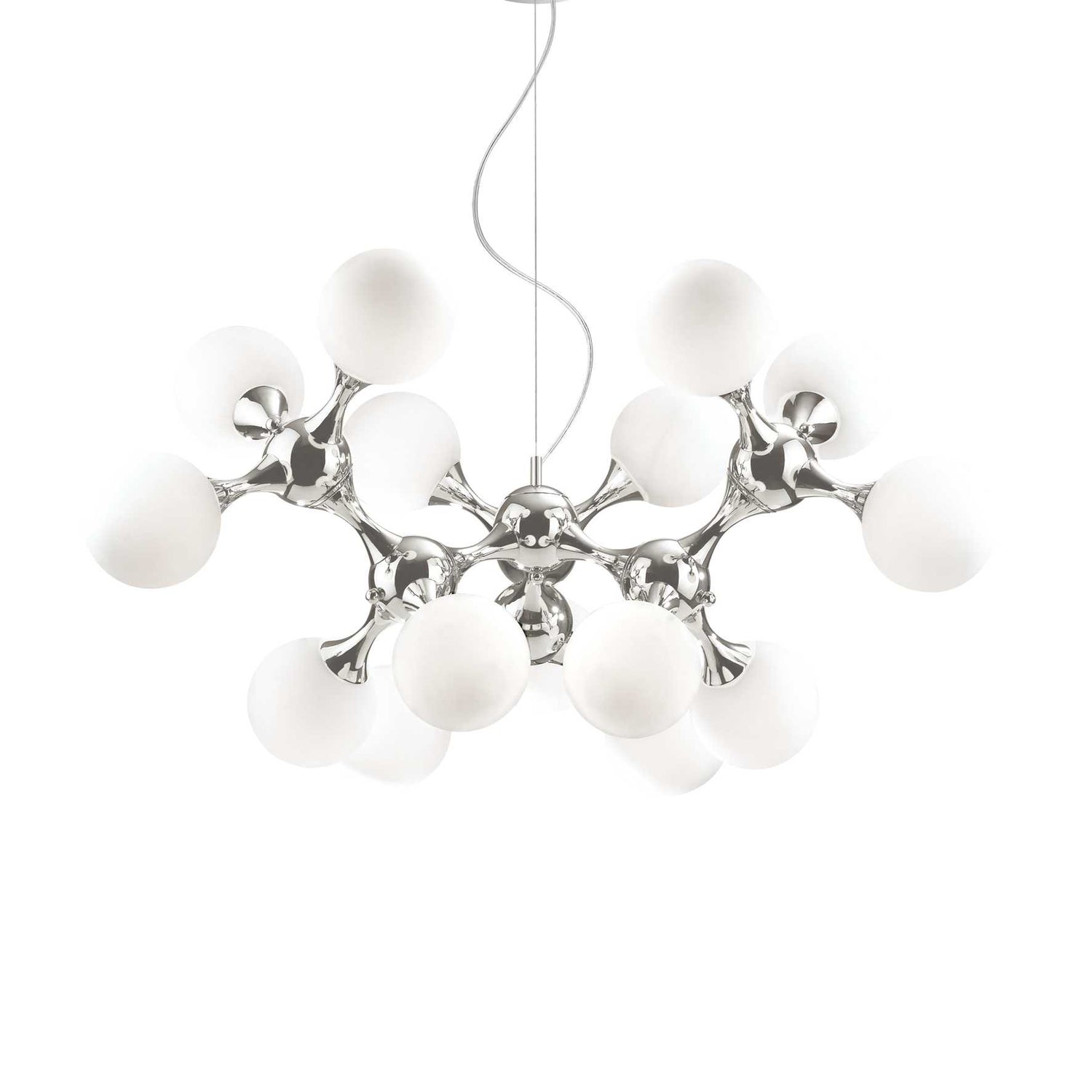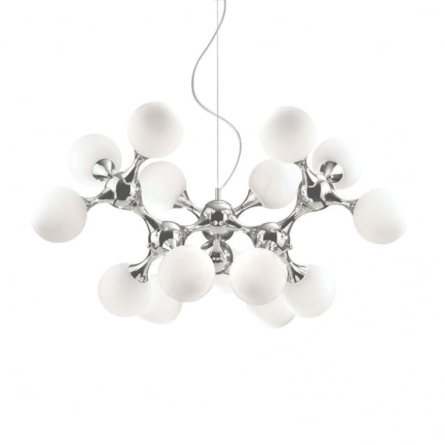 Chrome or satin brass metal frame. White acid-etched blown or transparent or chrome glass diffusers.