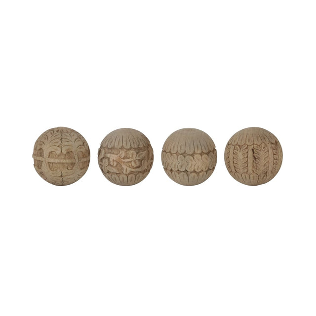 Hand-Carved Wooden Ornament Balls Set (4 Pieces) - 10 cm Diameter