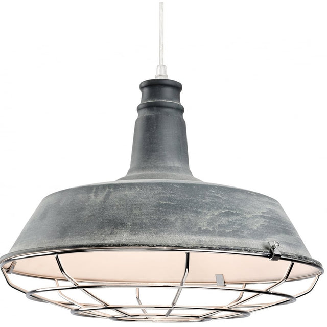 Pacific Industrial Chic Grey Ceiling Pendant with Chrome Grill