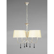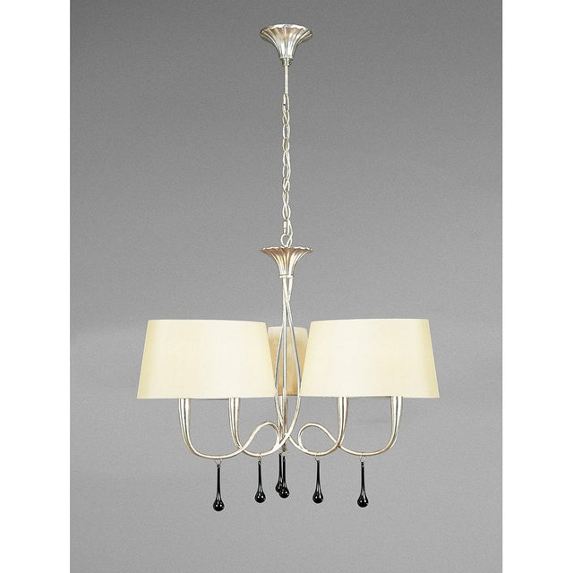 Paola Pendant 3 Arm 6 Light Chandelier, Silver Finish with Cream Shades & Removable Black Glass Accents