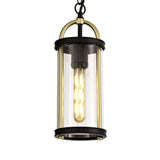 Elegant Black & Gold Pendant Light with Clear Glass Shade, E27, IP54, Adjustable Drop