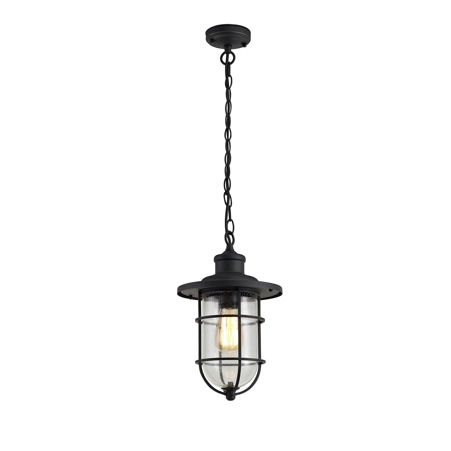 Elegant Black and Gold Pendant Light with Seeded Glass Shade