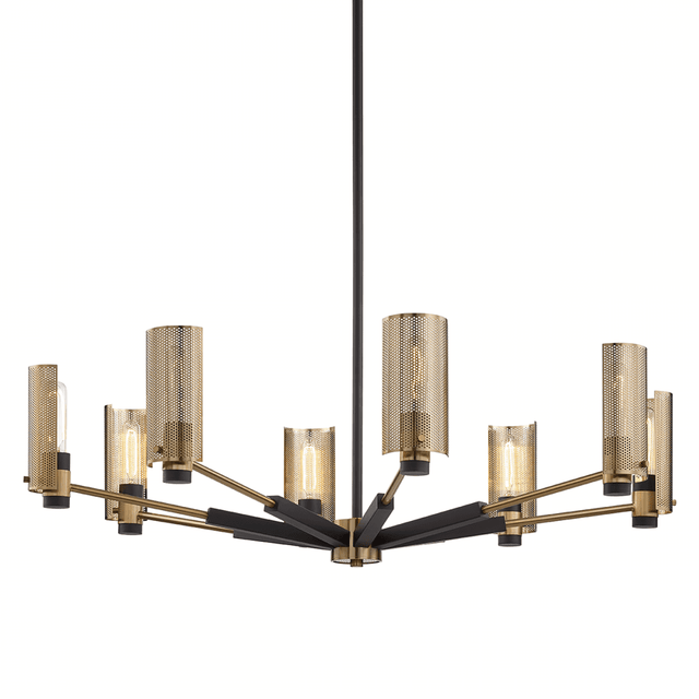 Cradling crackling bulbs, Pilsen’s perforated steel plates finished in brass contrast against a bronze so deep as to be almost black. Further perforations and tactile details unify Pilsen while smooth curves and hard edges add even more visual contrast to this striking, harmonious fixture.