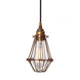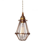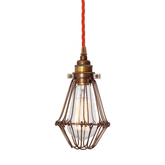 Industrial Vintage Cage Pendant with Blue Accent Cable, Bronze Finish