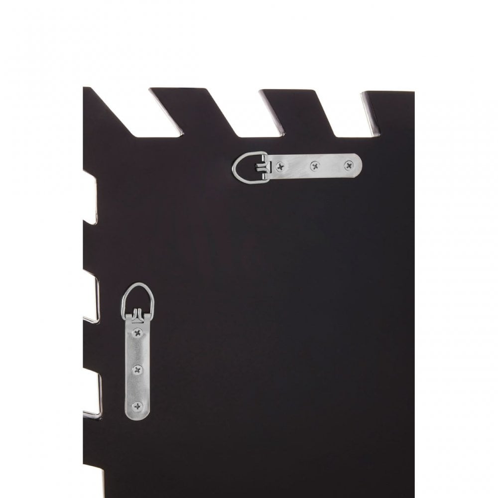 This rectangular wall mirror features a sunburst-inspired design with small cut out pieces which emanate outside to form its frame. The mirror€™s sleek lines are paired with reflective silver hues to double the glamorous appeal. This modern rectangular mirror with a three-dimensional border pattern will add a quirky accent piece in a luxury setting.