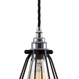 Chrome & Black Industrial Cage Pendant Light - Powder Coated Black is backordered and will ship as soon as it is back in stock.