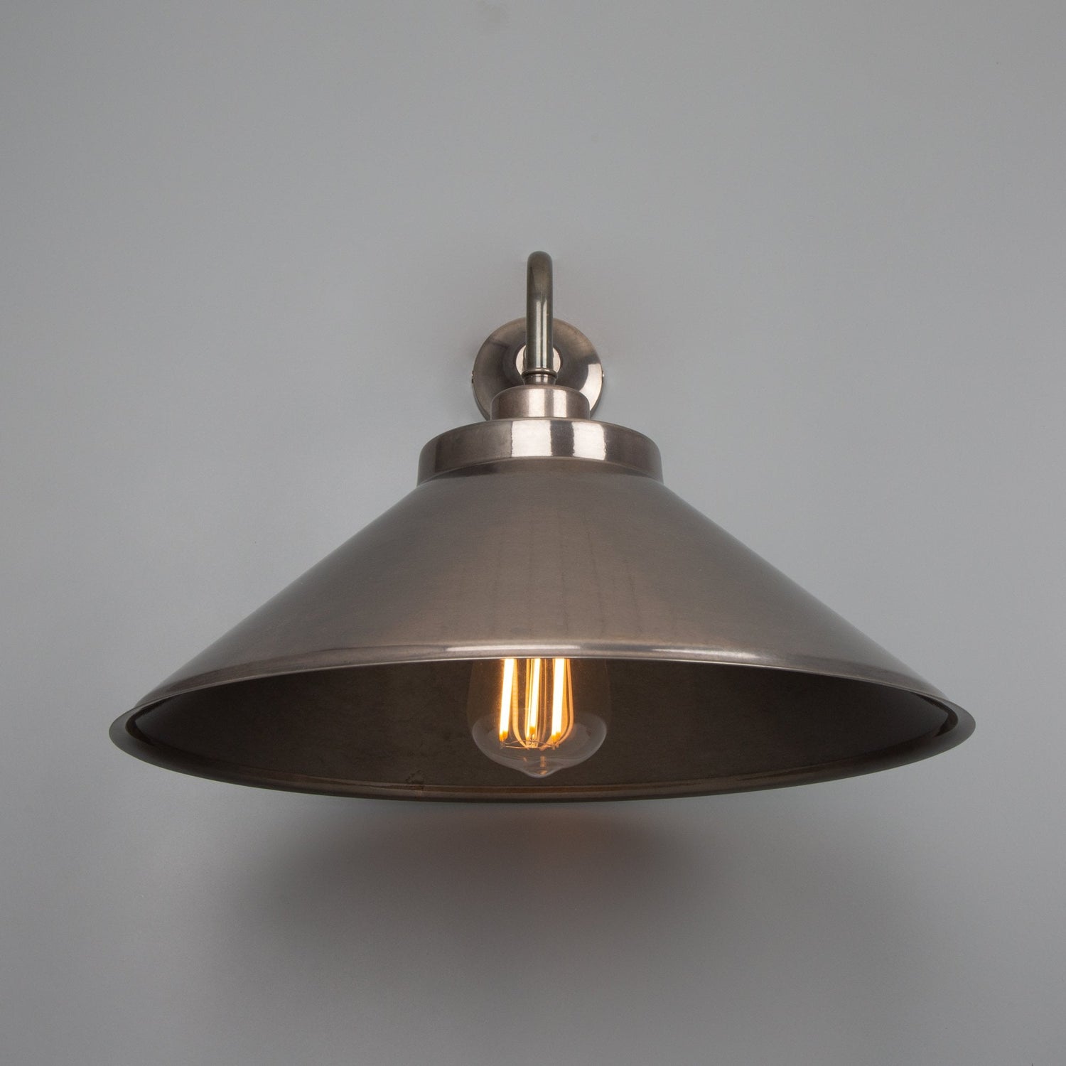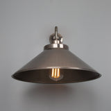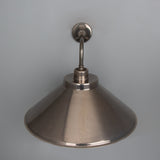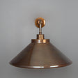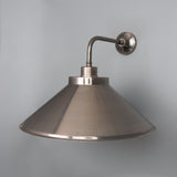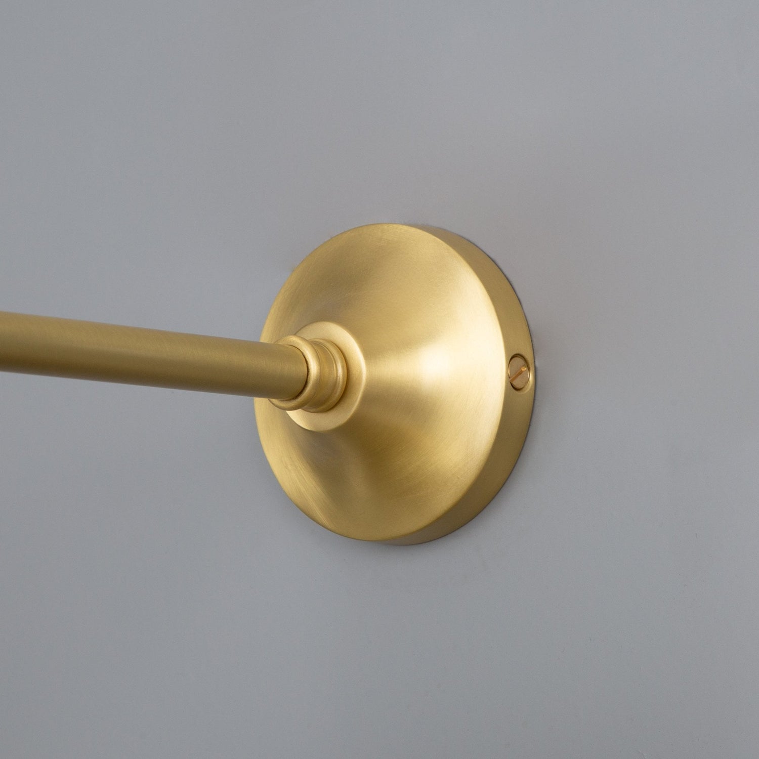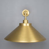 The Rio wall light is a modern wall light with a simple, vintage shade. The wall light features a small brass wall rose with a straight arm that curves downward at a right angle to.