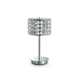 Chrome metal frame and details. Square-shaped crystal elements on sides and sandblasted bottom glass sheet.