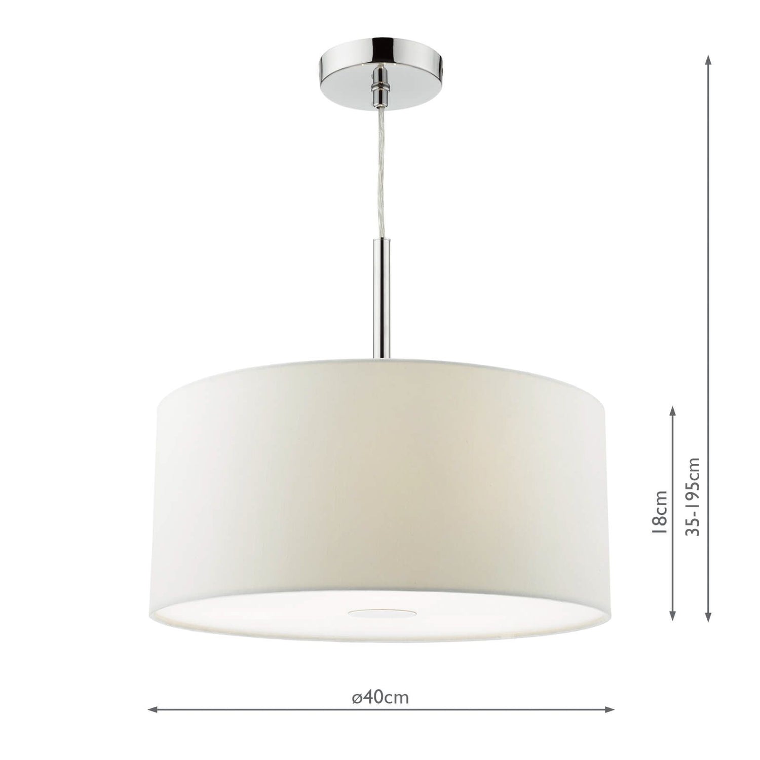 40Cm Porcelain White Faux Silk White Lined Drum, C/W White Acrylic Diffuser With Chrome Detail, 3 Light Polished Chrome Suspension
