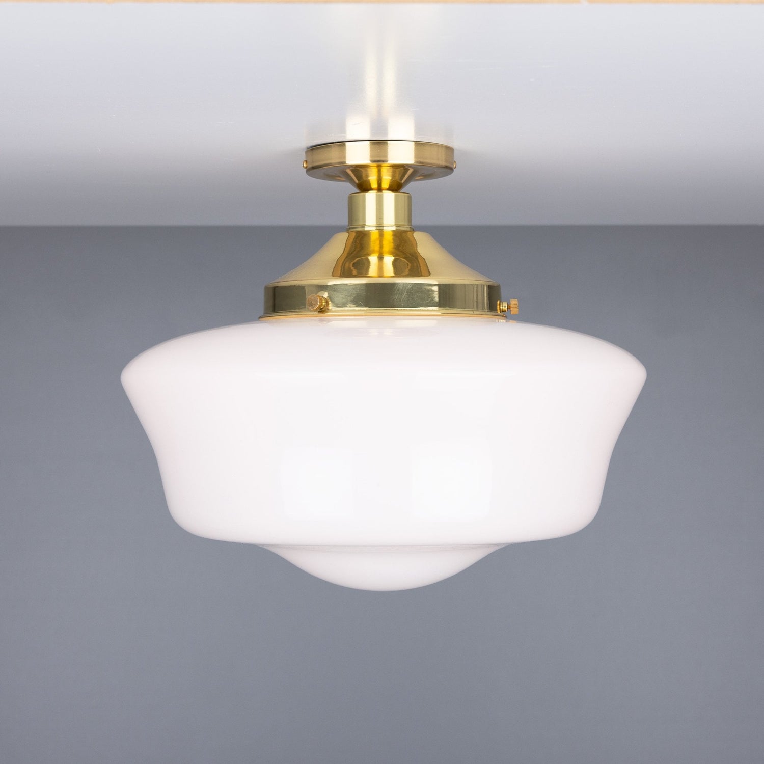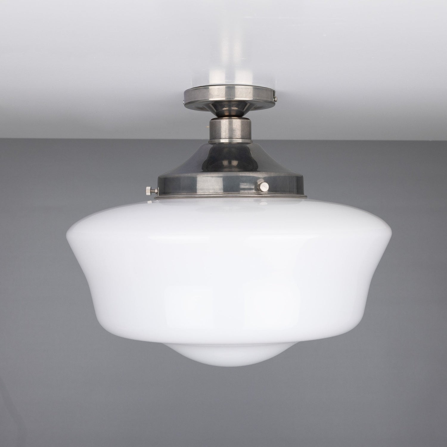 With a clean design, the Schoolhouse Ceiling Light Fitting is widely specified to interiors where traditional architecture requires a sympathetic lighting. This contemporary flush ceiling light is a great addition to any foyer, above a.