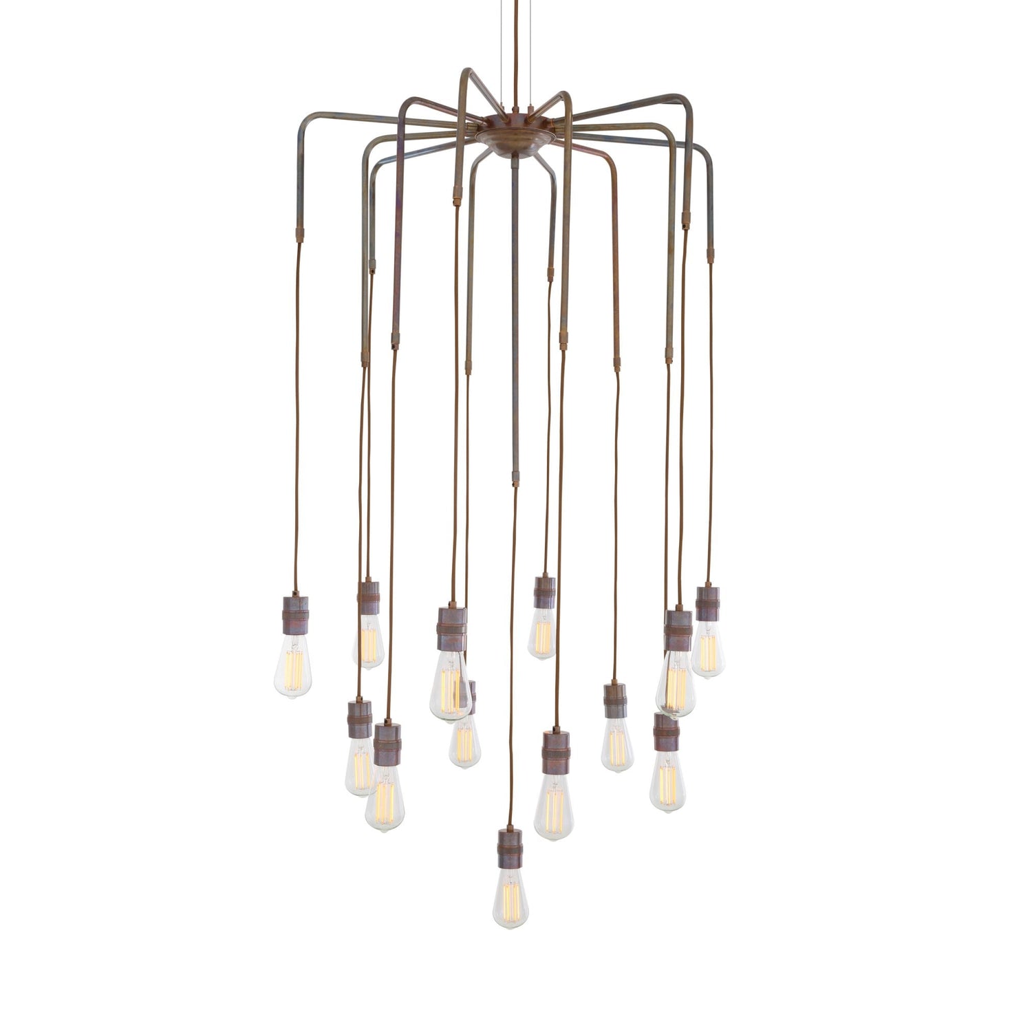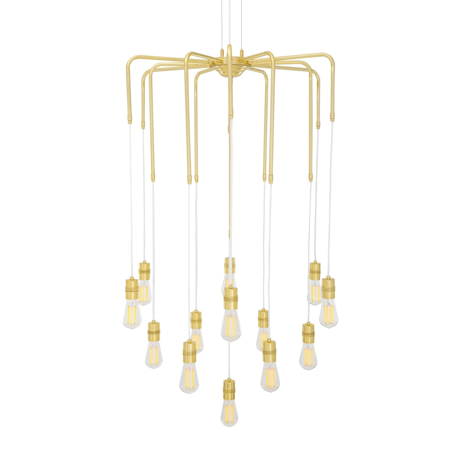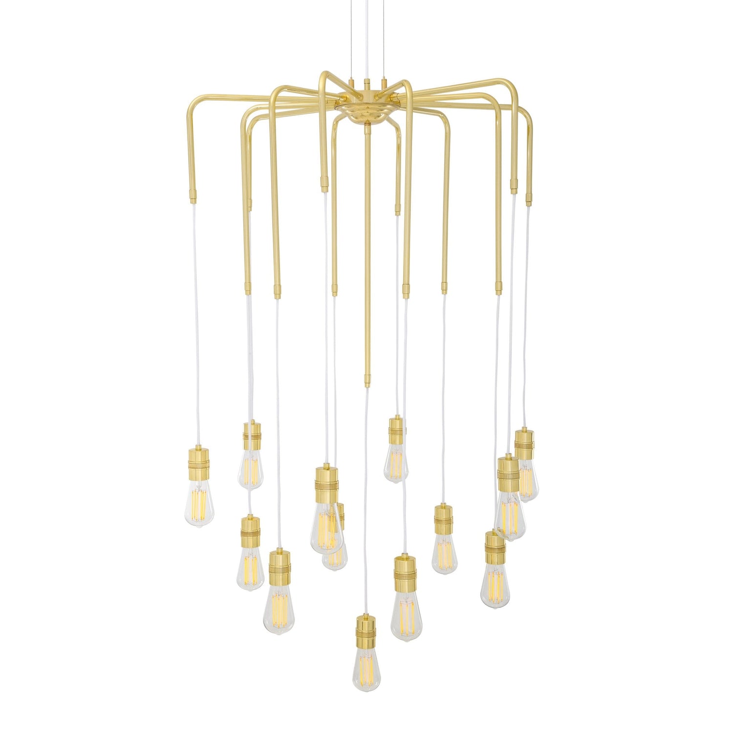 Designed to add style to any space, the Sela Chandelier epitomises an elegant and captivating design that transforms interiors with its bold proportions and stunning silhouette. This thirteen-light chandelier creates a dazzling display while providing plenty of illumination for your dining room, living area or high-ceiling foyer. Blending modern aesthetic with industrial chic design, this contemporary chandelier offers a retro flair in any indoor setting. Its geometric, multi-dimensional form will elegantly light up any room with modern style. Suitable for any industrial and minimalist interiors, this multi-arm chandelier looks great when lit with an Edison-style bulbs for a softer and more inviting look. Bulbs are sold separately.