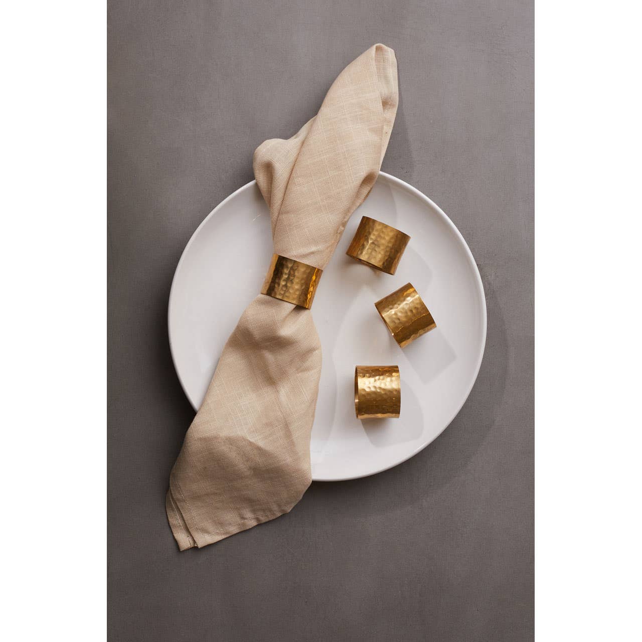 Elegant Brass Hammered Napkin Ring Set - 4 Pieces