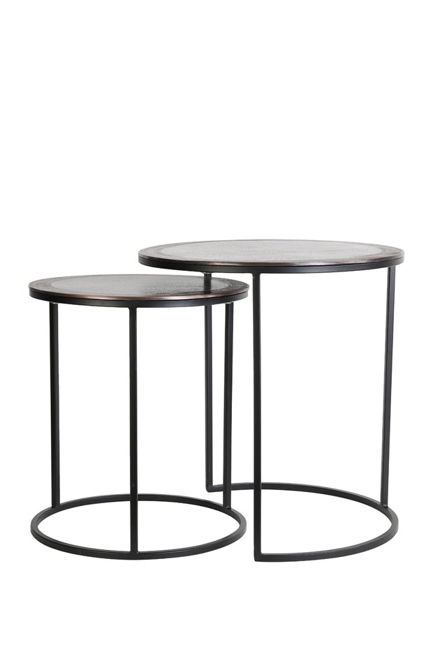 Set of Two Nesting Side Tables Ø40x45 cm and Ø50x52 cm in Ant Copper and Black Finish