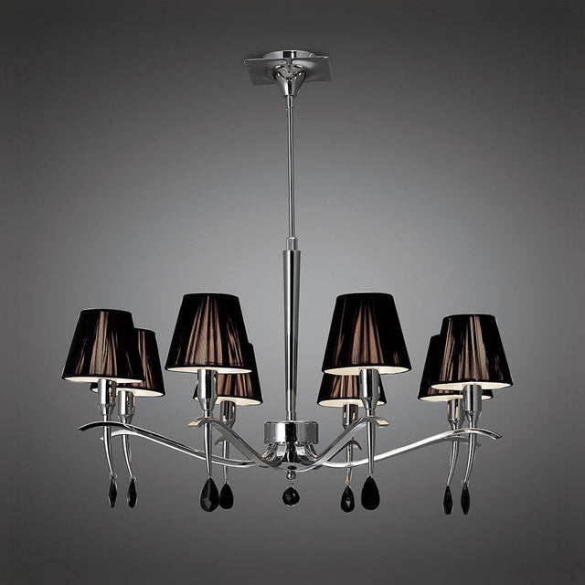 Siena 8-Light Round Pendant in Polished Chrome with Black Shades and Crystals