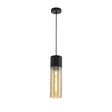 Sleek Black Pendant Light with Amber Glass Shade, E27 Socket