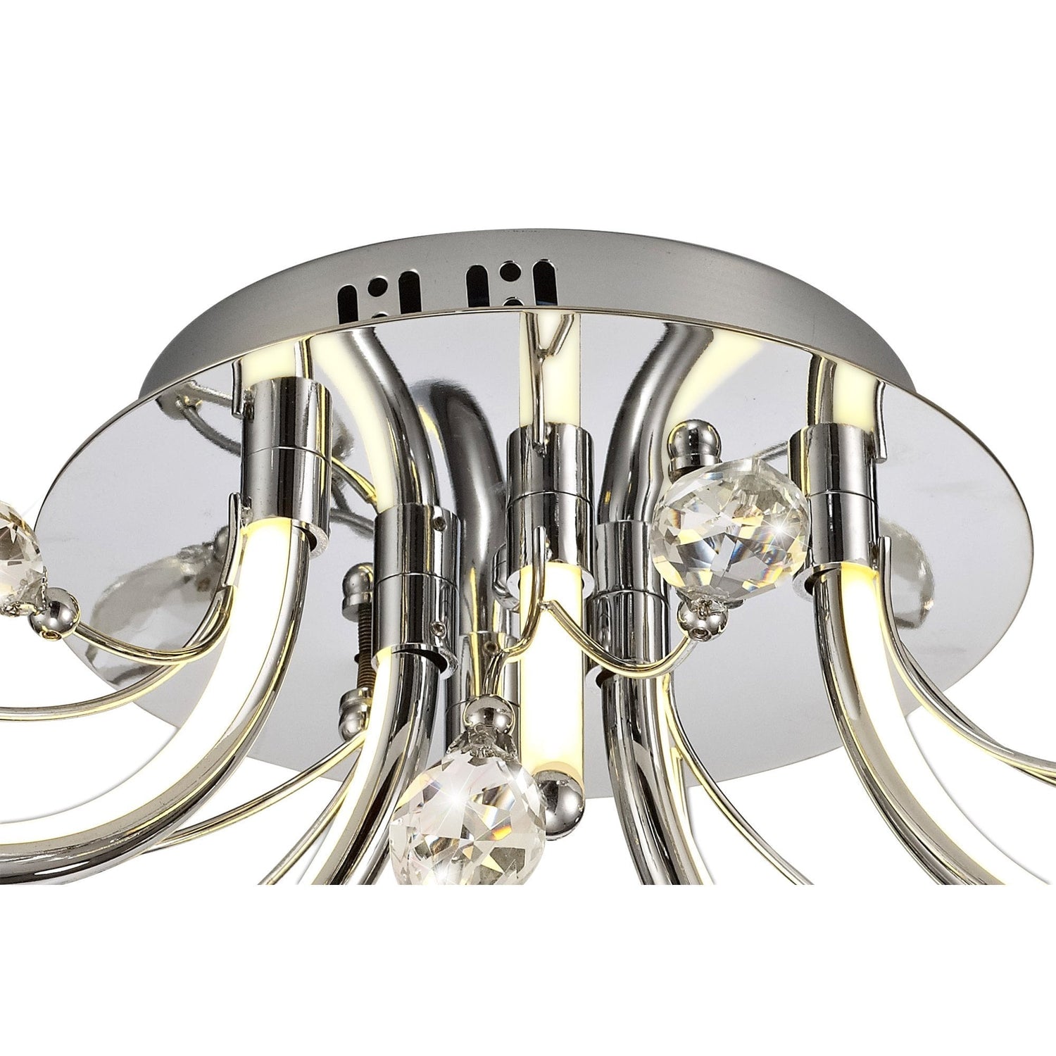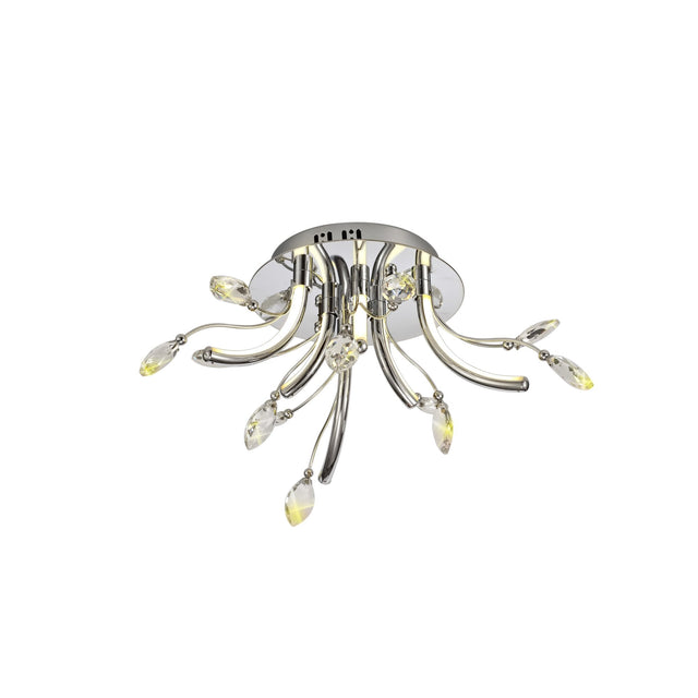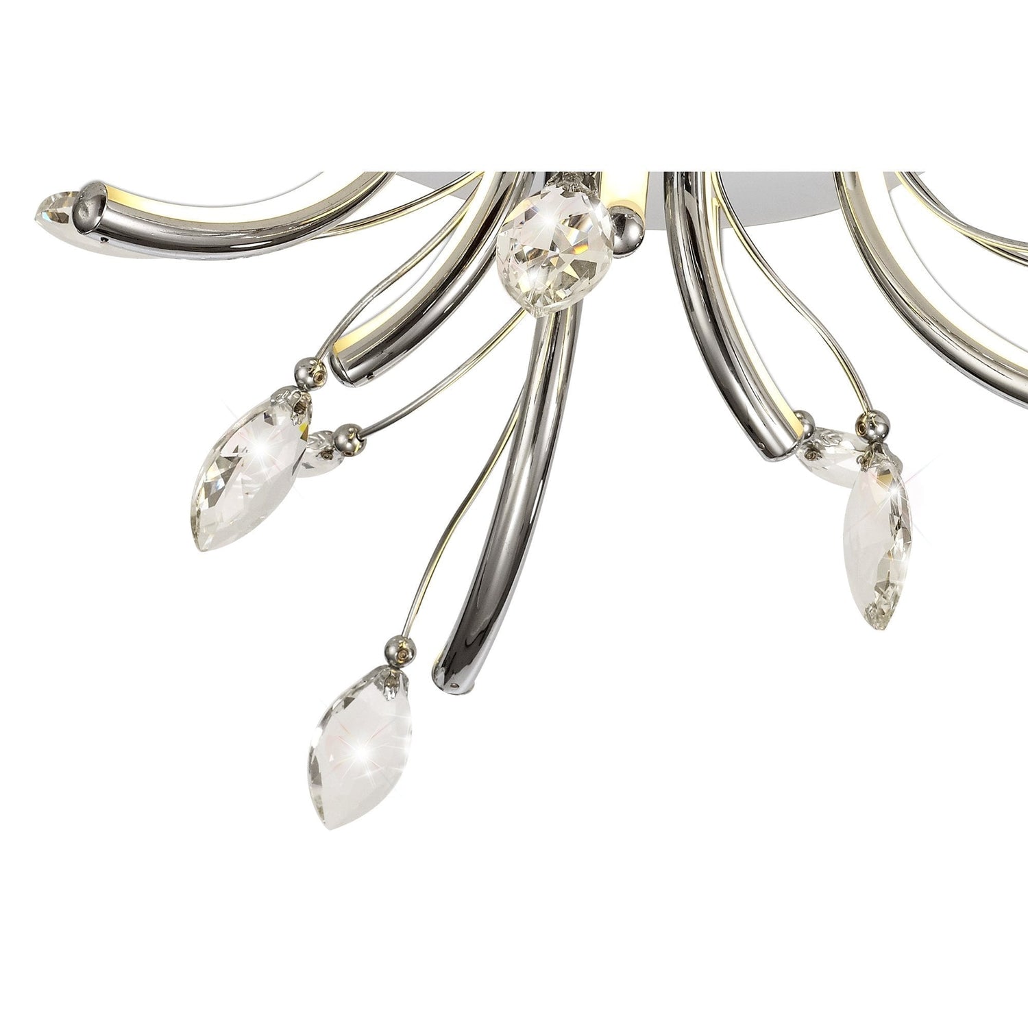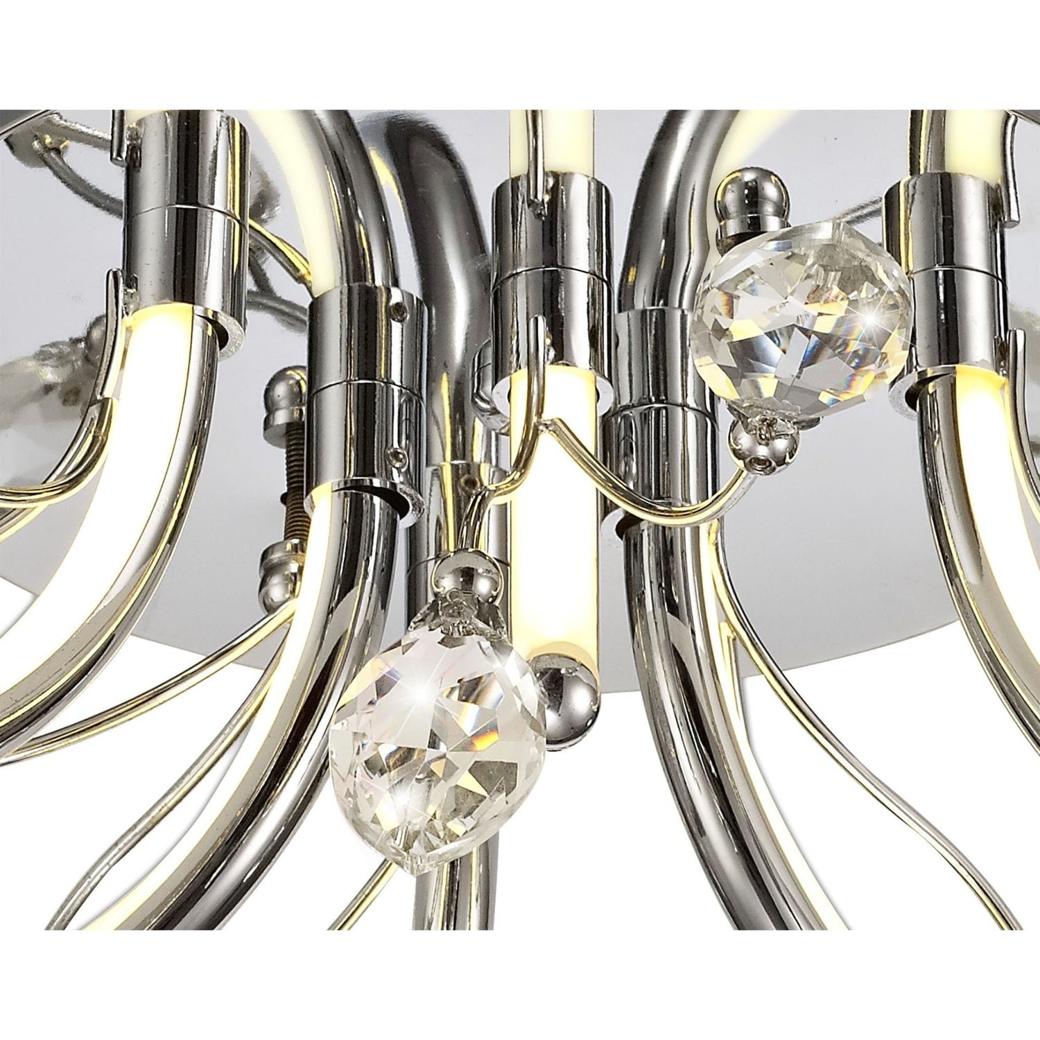 Polished Chrome LED Ceiling Light with Opal White Shade and K9 Crystals, 6 x 2W, 580lm, 3000K, 3-Year Warranty