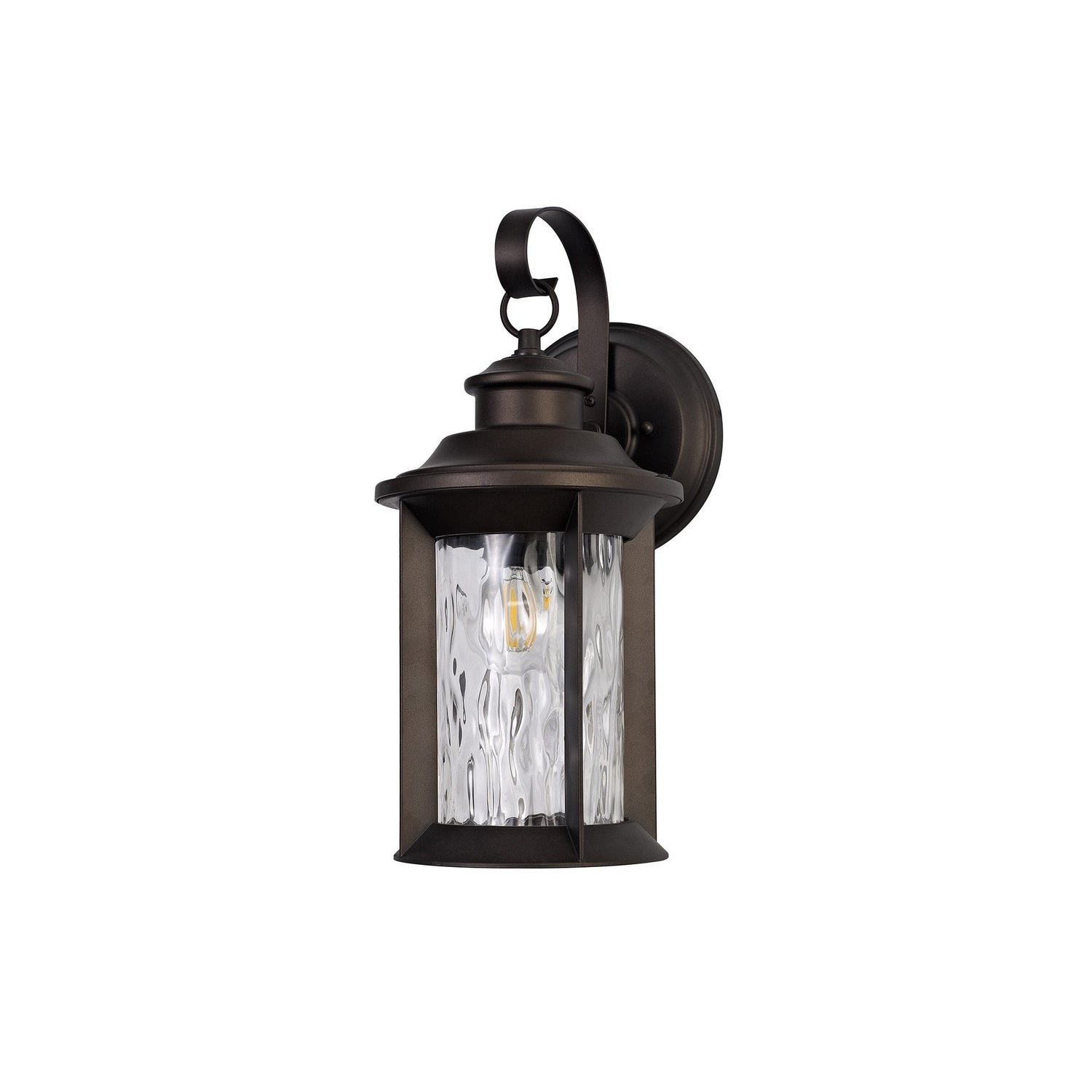 Antique Bronze Wall Lantern with Clear Ripple Glass, E27 Fitting, IP54