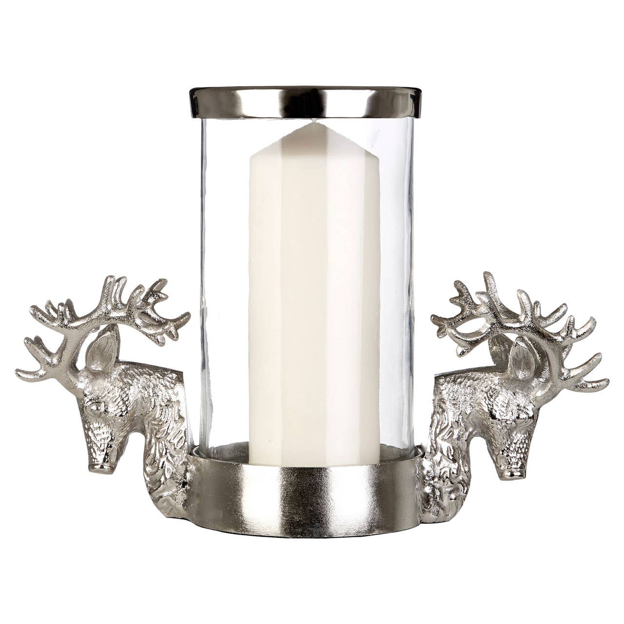 Majestic Stag Duo Candle Holder in Nickel Finish