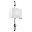 The architecturally-savvy Teva wall light has a sculptural mounting structure and a White Shantung Silk shade. It is constructed in steel and offered in either a Polished Nickel or Antique Bronze finish. Inspired by the fluid lines of a vintage scale.