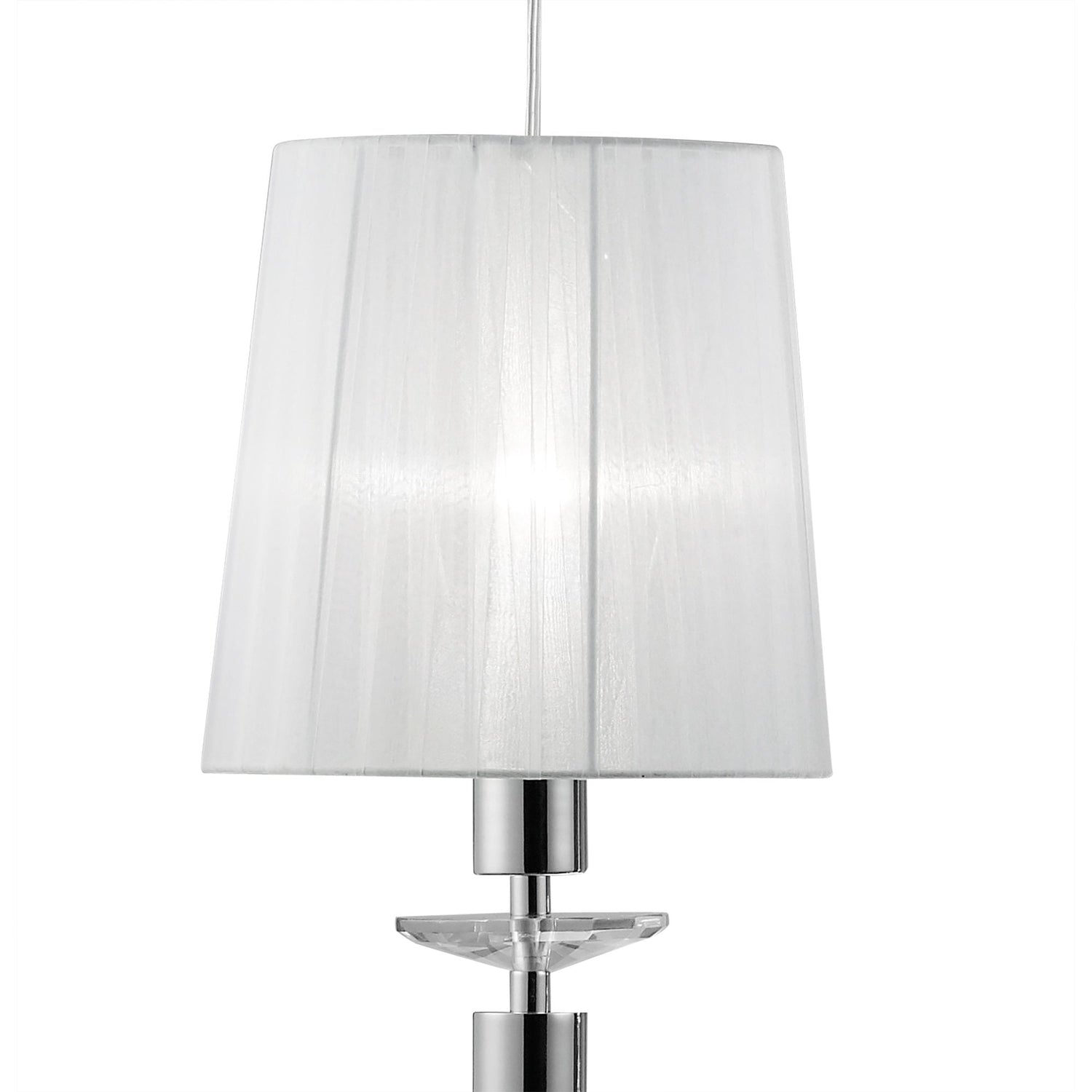 Tiffany Crystal Cascade Pendant Light: Polished Chrome & White Shades with Clear K9 Crystal