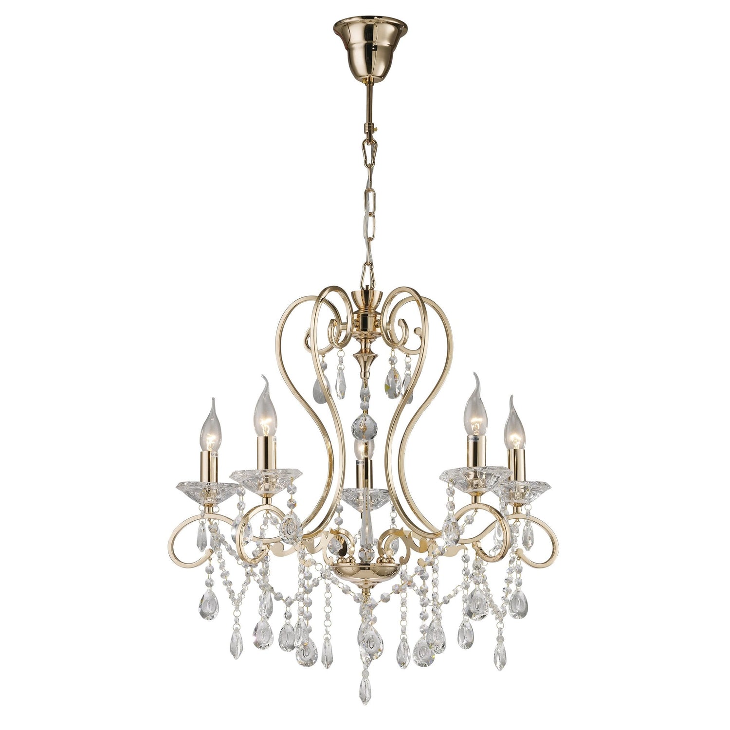 Vela French Gold Crystal 5-Light Pendant Chandelier