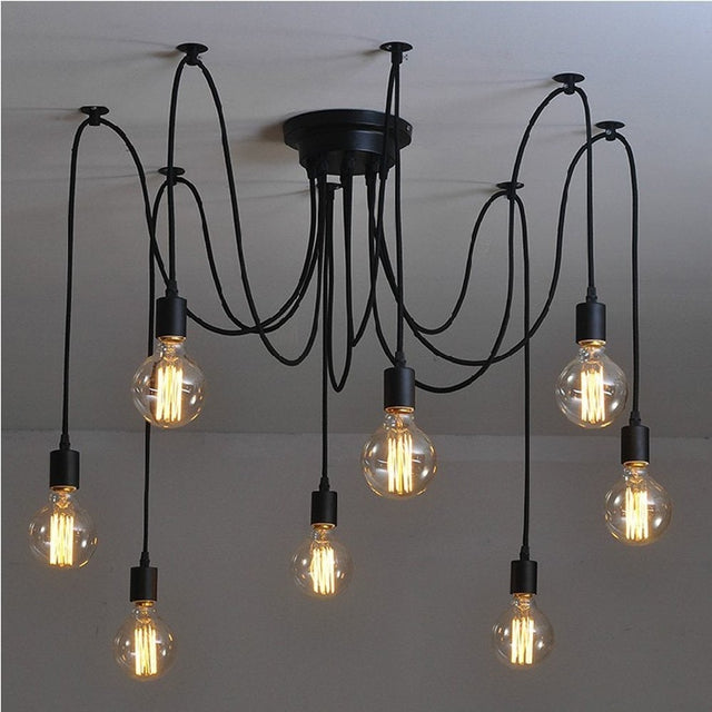 Vintage Industrial Spider Ceiling Light Fixture with 6 Edison Bulb Pendants