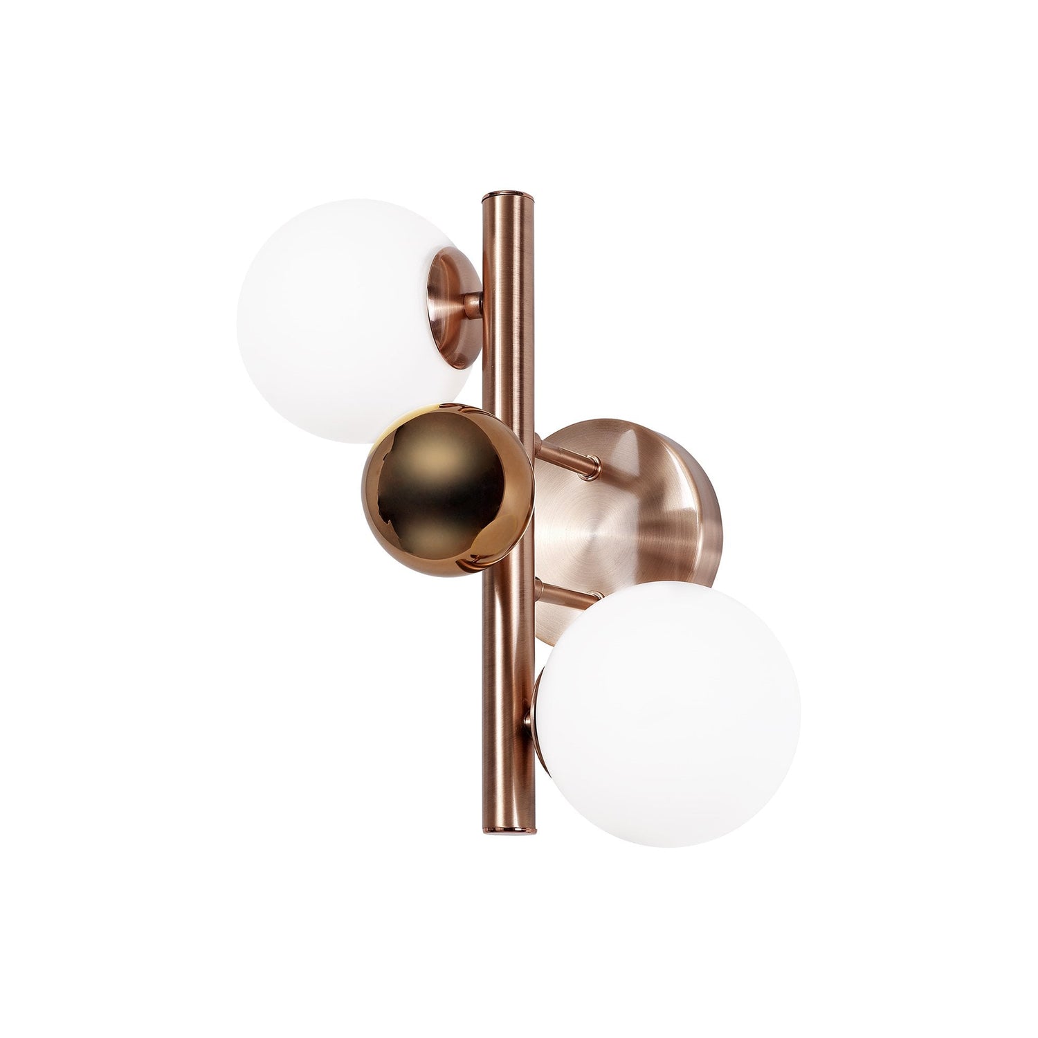 Antique Copper Wall Lamp with Opal and Copper Glass Shades, 2 x G9 Sockets