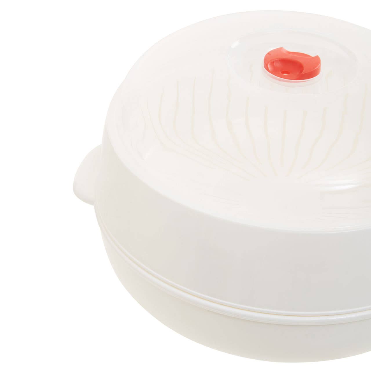 "Made of durable polypropylene, this microwave steamer makes it simple to cook vegetables, and can easily be washed in the dishwasher. In its centre is a slotted basket, preventing vegetables from getting soggy while cooking."