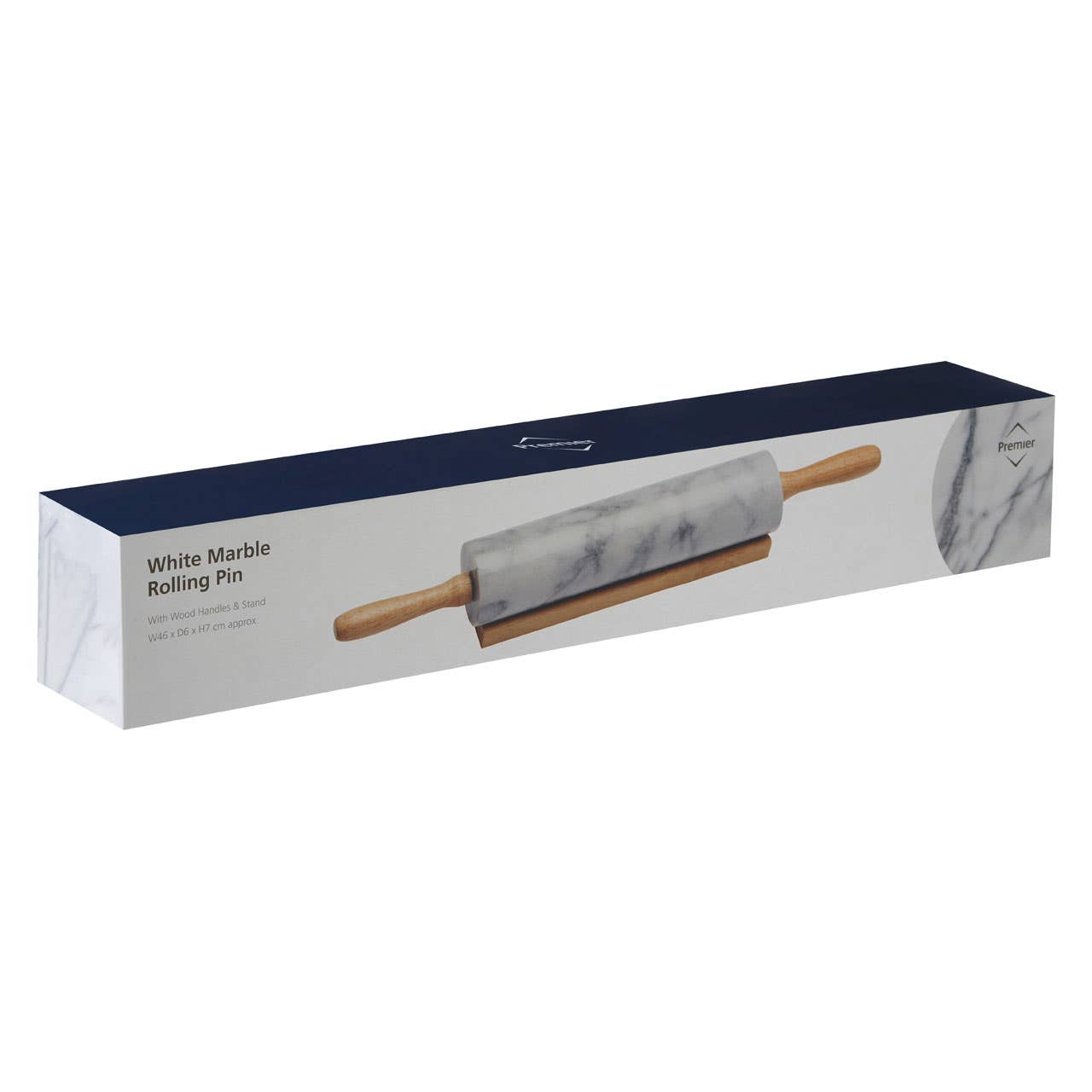 Elegant White Marble Rolling Pin with Wooden Handles is backordered and will ship as soon as it is back in stock.